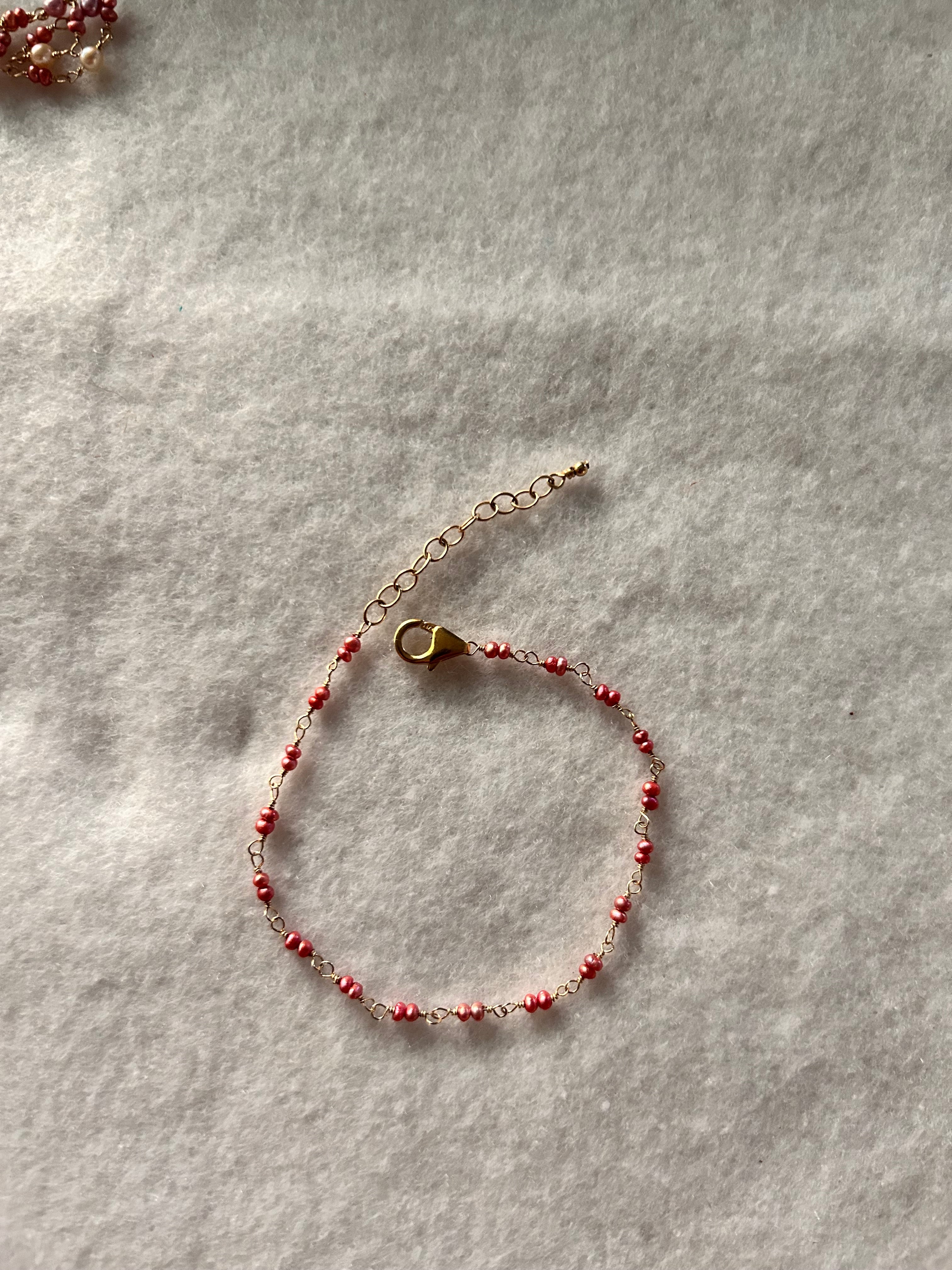 gold filled pink seed pearl bracelet 6 1/2 inch to 7 1/2 inch