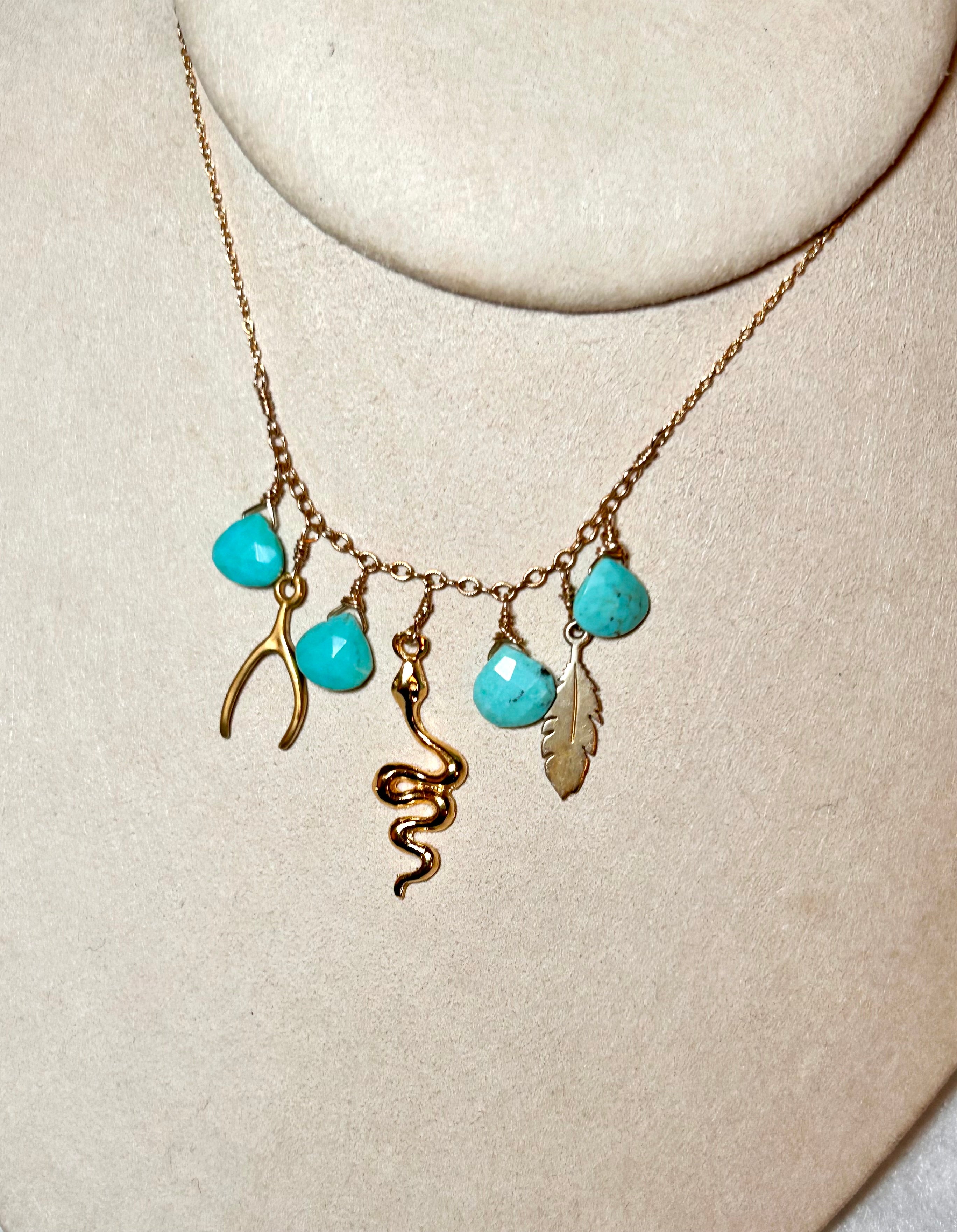 Gold filled turquoise snake charm necklace 18”