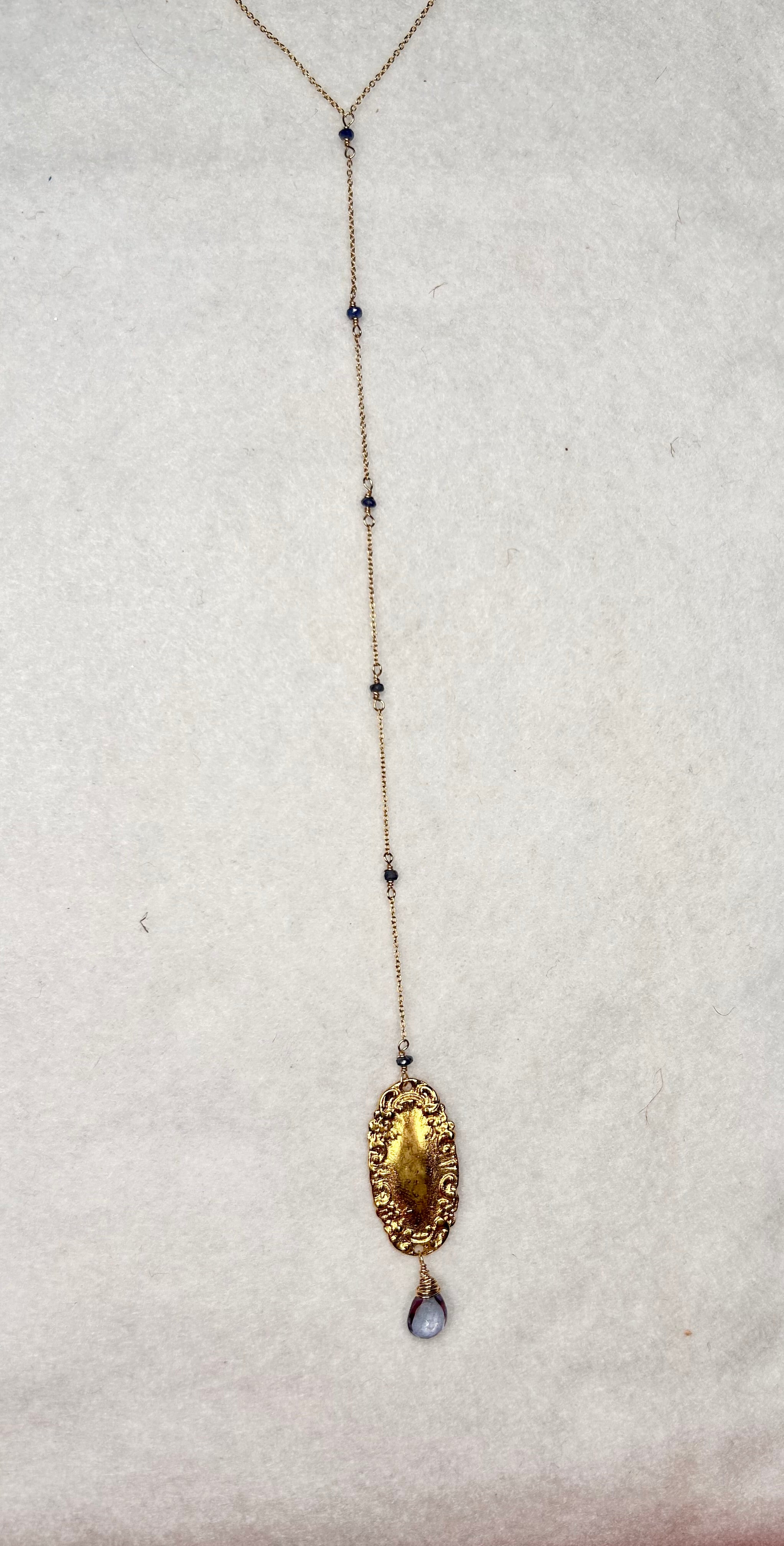 Gold filled Oval Tanzanite quartz blue sapphire 16 inch wide necklace